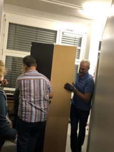 Am Mittwoch, 08.10.2025 hat sich vor der regulären Chorprobe eine kleine Delegation von querbeet zusammengefunden, um im Nebenzimmer des unteren Musiksaals, den alten Concordia-Notenschrank durch zwei neue zu ersetzen. Unsere Susanne hat von ihrer Arbeitsstelle zwei sehr gut erhaltene ausrangiere Schränke organisieren können, die sie zusammen mit ihrem Sohn Dustin zur Schule gebracht hat. Der querbeet-Trupp hat sich dann um Abbau, Aufbau und Putz gekümmert, es wurde geschraubt, geschleppt und geschwitzt und Musik zur Motivation gab’s als Sahnehäubchen obendrauf…